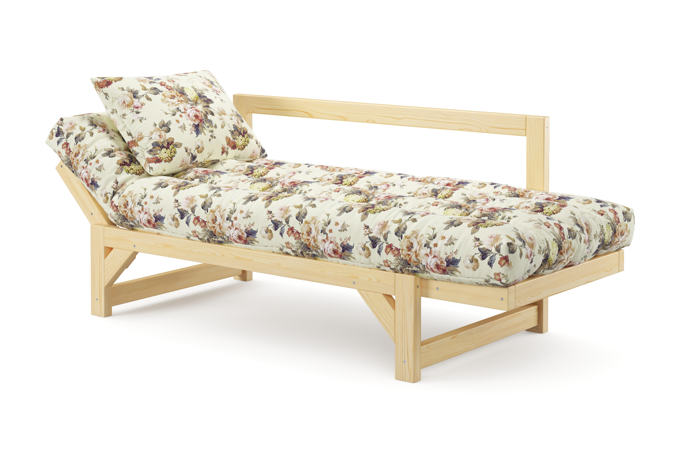 Максимальная нагрузка — 220кг. Ширина деревянной спинки 130 см. Приспинные подушки, представленные на фото, входят в комплект. Декоративные приобретаются отдельно. Диван продается без лакокрасочного покрытия, под самостоятельную покраску. Высота сиденья без матраса - 31 см, с матрасом 46 см.